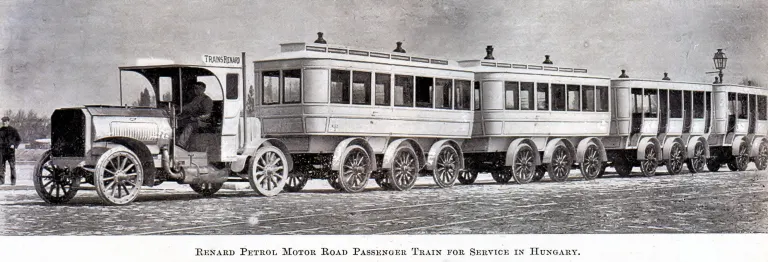 Renard yol treni, 1903 Fransız Albay Charles Renard tarafından tasarlanan katarlı, çok tekerli, mafsallı bir araç sistemi, trenin raysız olanı, raysız tren, ray masrafı olmayan ve sadece yol olması halinde çalışabilen, çok yük taşıyabilen tren..