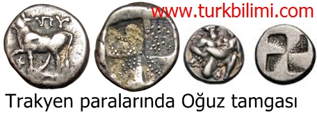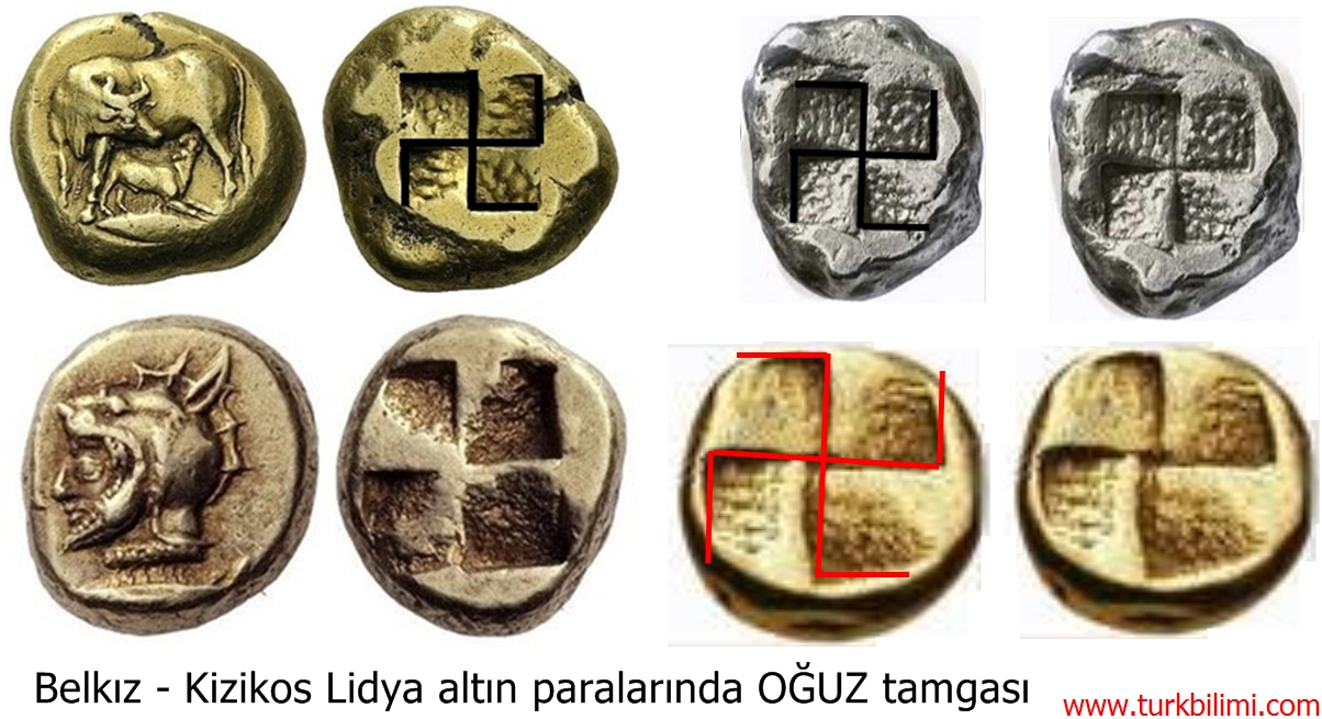 Paralardaki oertak tamga Çarkıfelek – Swastika gibi isimlerle de anılan Oğuz tamgası.
