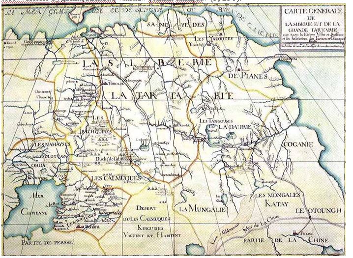 Lakin Bir qədər sonrakı xəritələrdə artıq başqa mənzərə ilə rastlaşırıq Moskvadakı Dövlət Tarix Muzeyində qorunan, XVIII əsrin sonlarına aid edilən və üzərində «Roma dilindən tərcümə edilmiş kosmoqrafiya. Burada dövlət və ölkələrin adları bildirilir» sözləri yazılmış başqa bir rus xəritəsində Moskva Tatar dövlətinin ərazisi Sibir kimi göstərirlir və onun haqqında belə yazılır. Böyük Sibir ölkəsi. Əvvəllər xanlıq idi, indi Rusiyanın tərkibindədir (2).